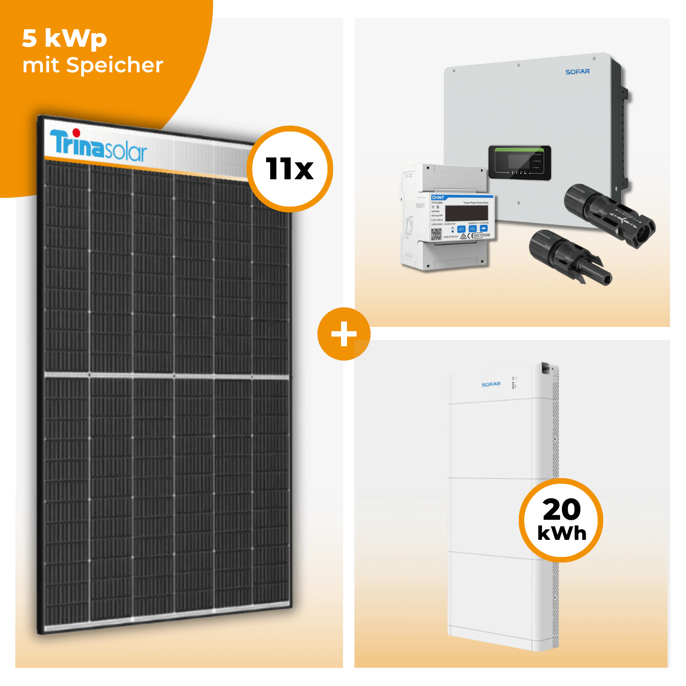 Dieses Photovoltaik-Komplettset mit über 5 kWp Leistung kombiniert 11 × Trina Vertex S+ 455 W Tier 1 Glas-Glas Solarmodule mit dem leistungsstarken SofarSolar HYD 5KTL-3PH Hybrid-Wechselrichter und bietet damit eine der effizientesten, sichersten und wirtschaftlichsten Lösungen für Eigenheime und kleinere Gewerbeeinheiten.